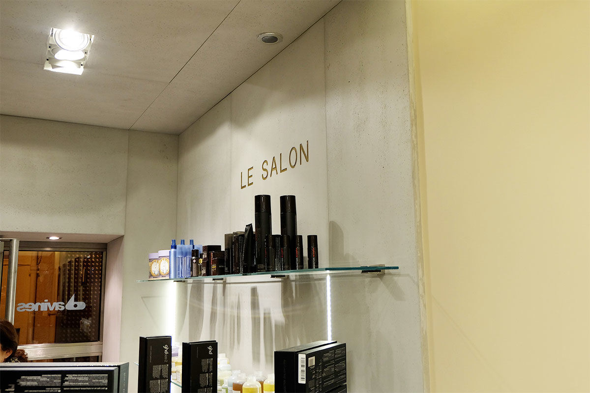 Pour ce salon, nous avons recouvert les murs intérieurs ainsi que la devanture de Panbeton.