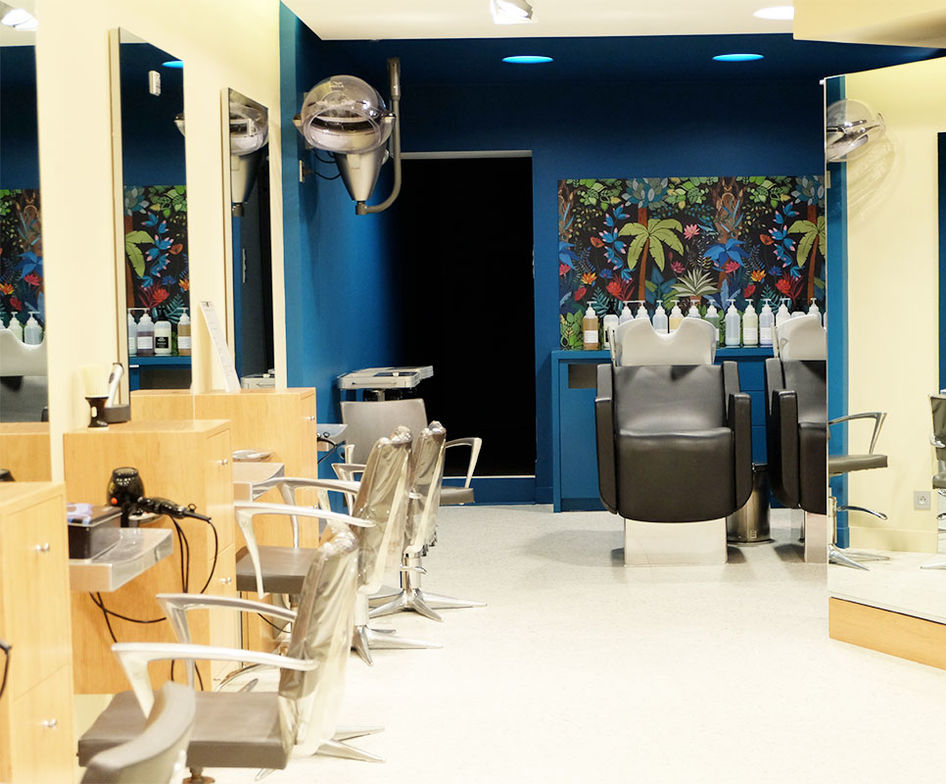 Les meubles ont été réalisés sur mesure par nos soins dans notre atelier. Leur ergonomie a été étudiée pour permettre un rangement optimum du matériel de coiffure.