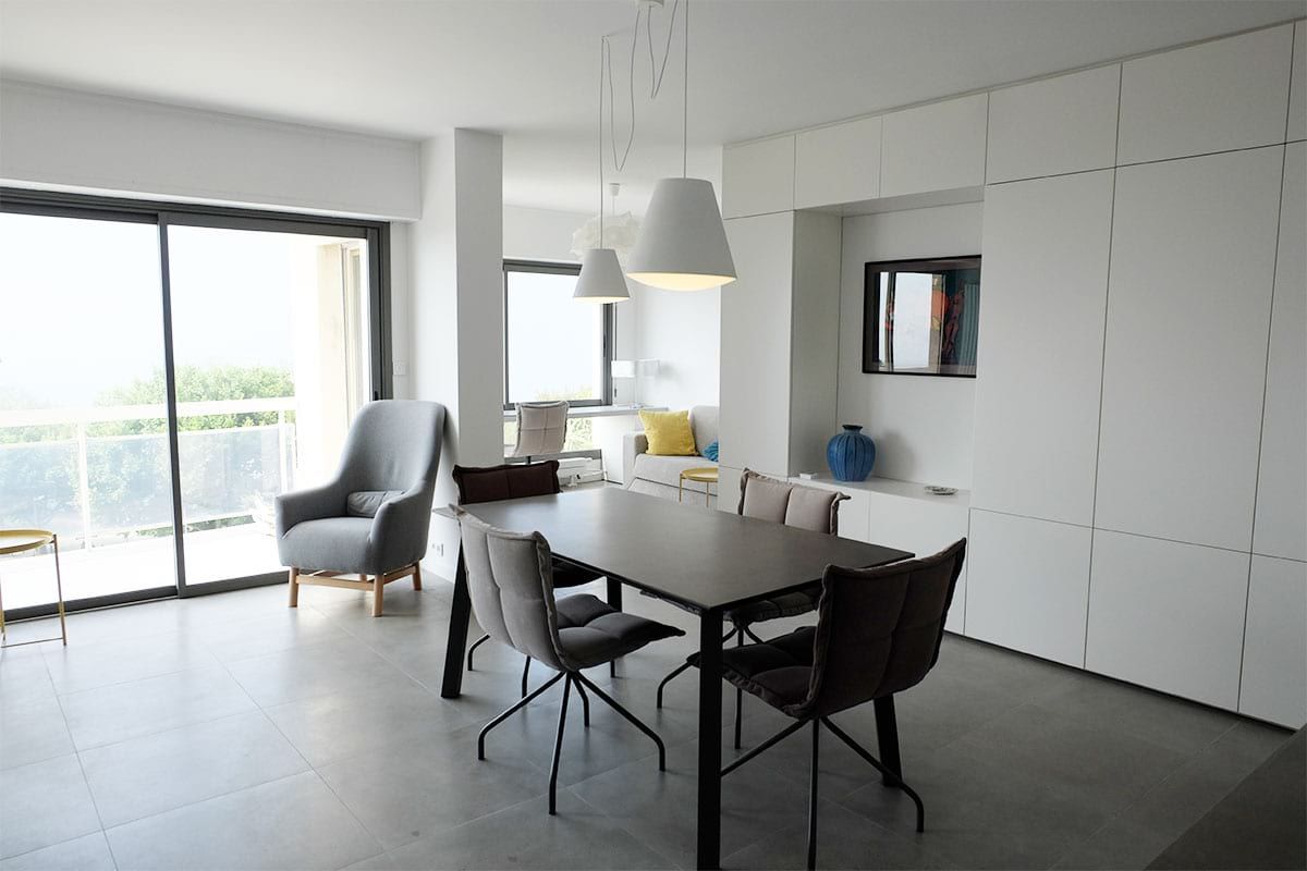 Cela nous a donc permis de tout redistribuer pour offrir plus de clarté et créer un maximum d’espaces de rangement. La cuisine est maintenant ouverte et totalement repensée.