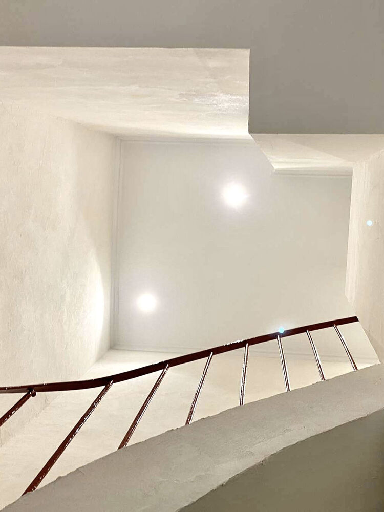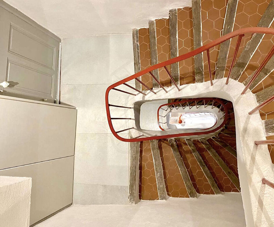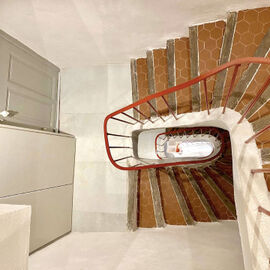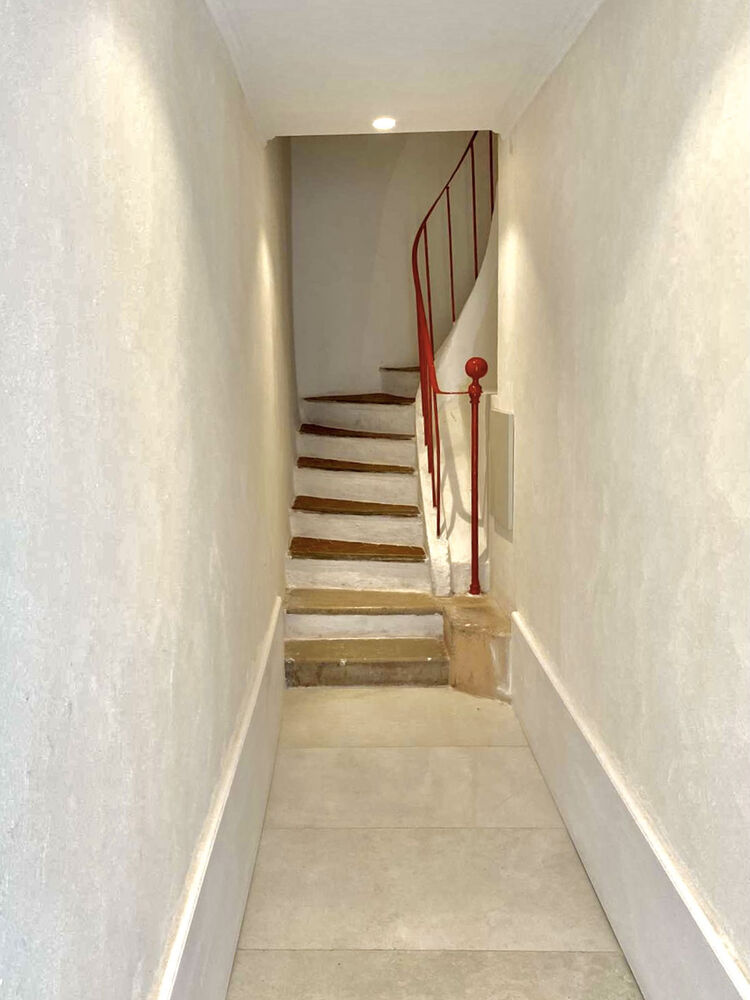 Pour ce hall d'immeuble situé au Mourillon, nous avons décidé de redonner de la clarté en apportant plus de luminosité et en ajoutant une touche de couleur afin d'égayer cette entrée.