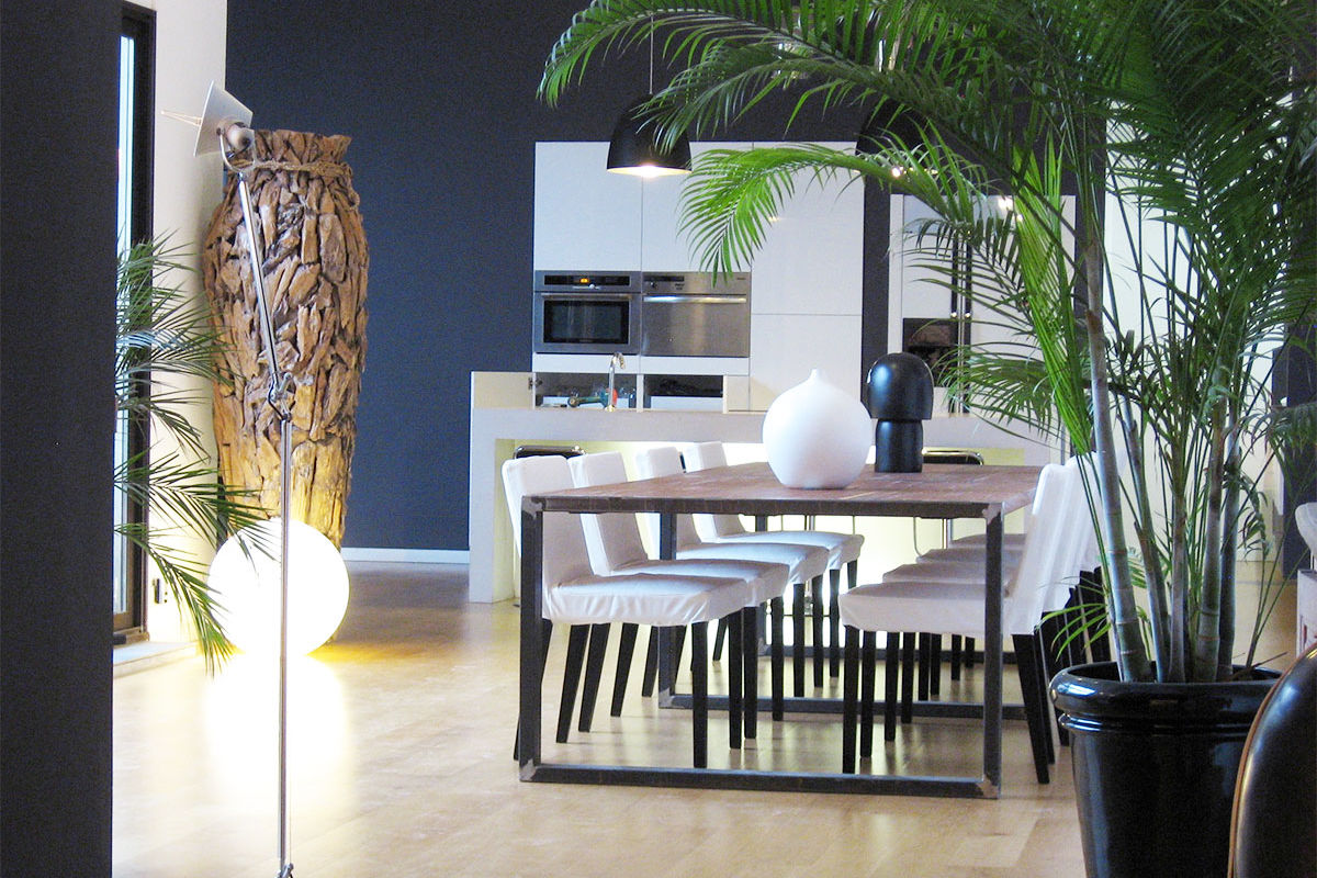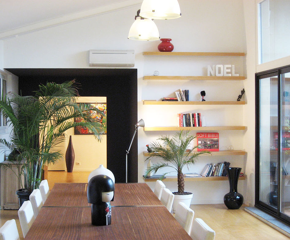 Ce loft a été entièrement créé par nos soins. Il ne s’agissait au départ qu’un premier étage d’une petite résidence de deux étages. Tout a été entièrement cassé et le toit a été ouvert au centre pour créer un patio.